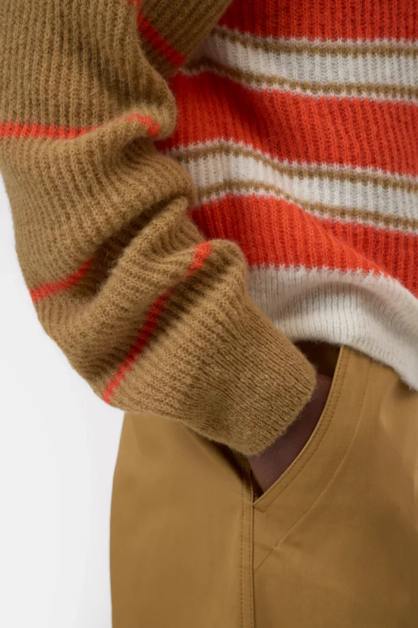 alpaca wool blend yarn and combines two different striped patterns with a classic ribbed texture.